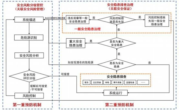 如發(fā)現(xiàn)重大安全隱患,應(yīng)按照8.3的要求進(jìn)行治理;如發(fā)現(xiàn)一般安全隱患,應(yīng)當(dāng)按照8.4的要求進(jìn)行治理;排查中如發(fā)現(xiàn)潛在的危險(xiǎn)源,應(yīng)回溯到“7.2系統(tǒng)描述”進(jìn)行定位和梳理,適時(shí)啟動(dòng)安全風(fēng)險(xiǎn)分級(jí)管控流程識(shí)別危險(xiǎn)源并管控相關(guān)風(fēng)險(xiǎn);如評(píng)估發(fā)現(xiàn)的問題不屬于上述任何一類,可選擇是否改進(jìn)后,回到系統(tǒng)運(yùn)行環(huán)節(jié)。
