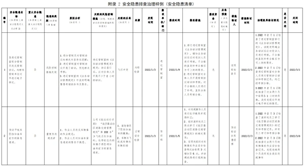 (2)對(duì)重大安全隱患除填入安全隱患清單外,還應(yīng)建立專門的信息檔案,包括重大安全隱患的治理方案、復(fù)查驗(yàn)收?qǐng)?bào)告以及報(bào)送情況等各種記錄和文件。
