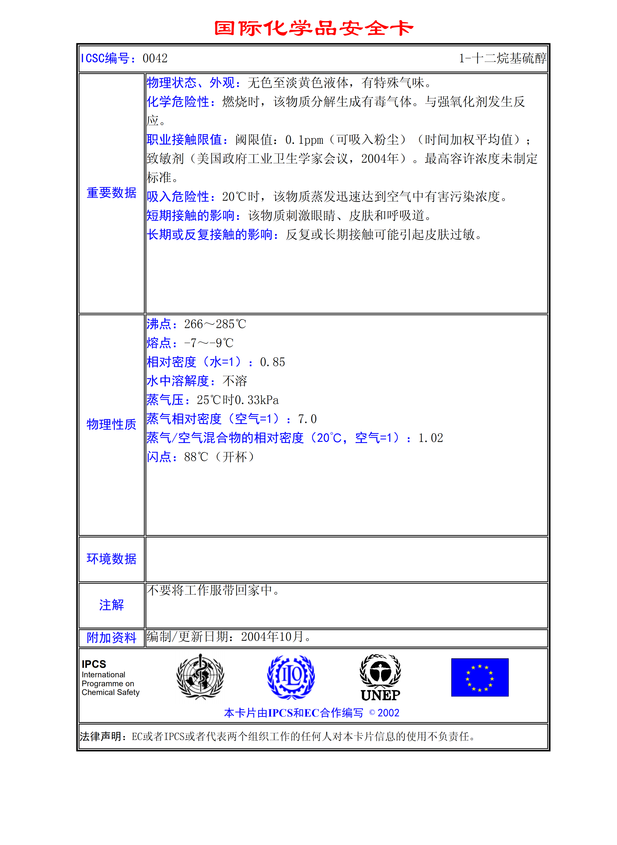 1-十二烷基硫醇MSDS