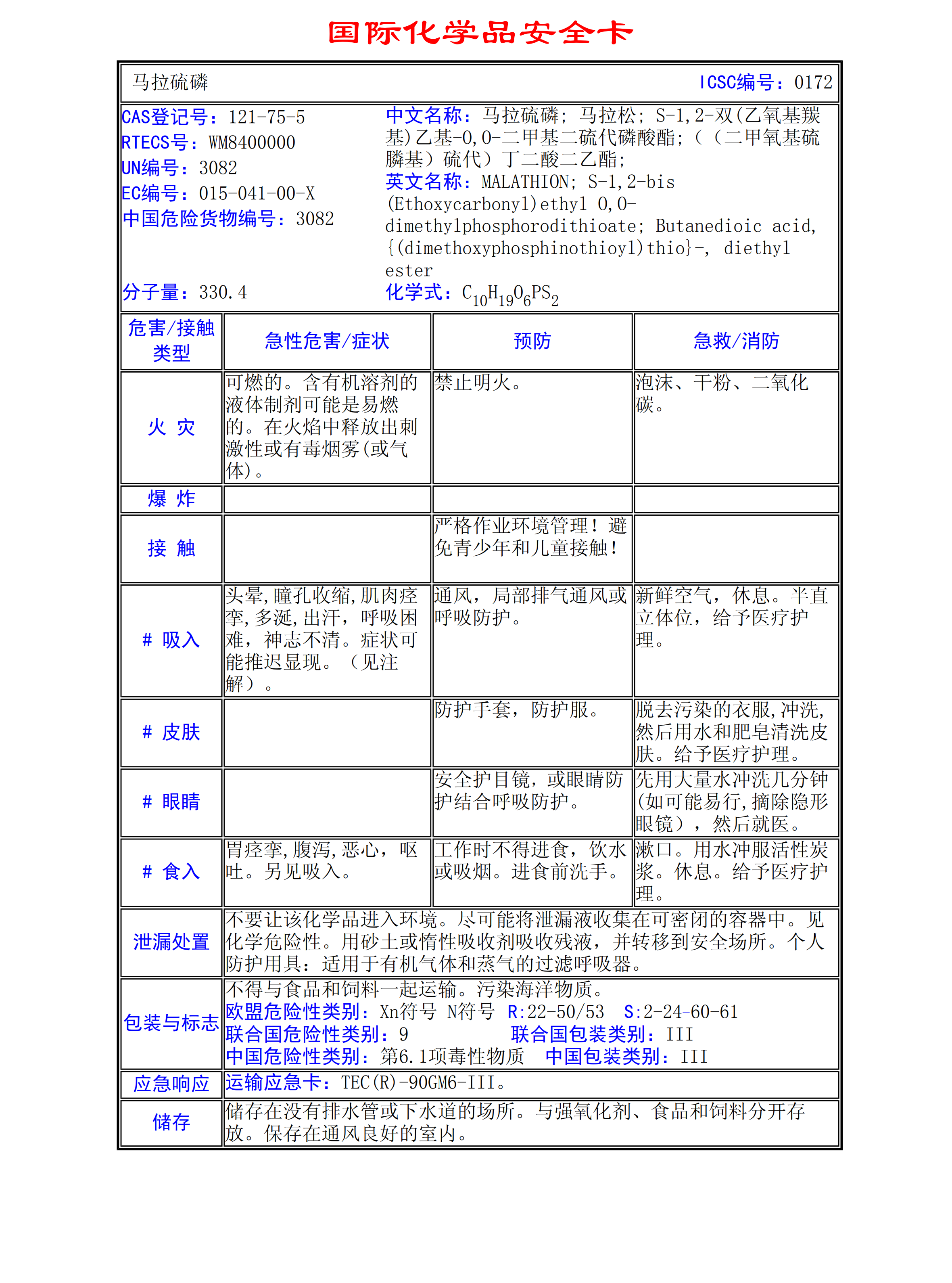 馬拉硫磷MSDS