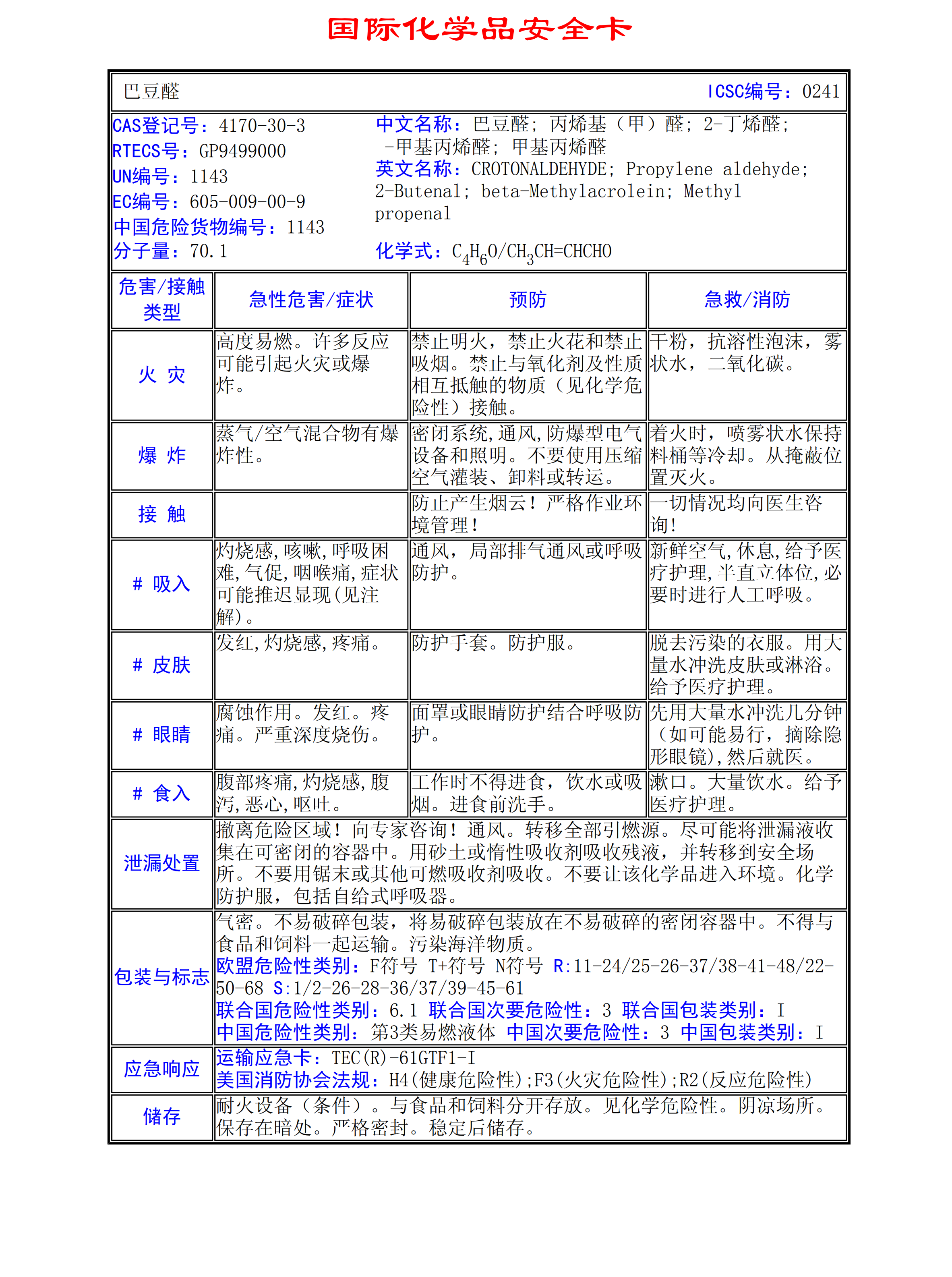 巴豆醛MSDS