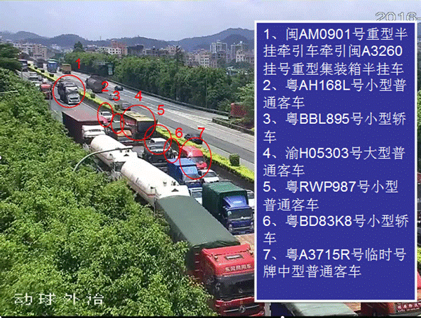 此次事故造成粵BBL895號(hào)小型轎車駕駛員江文洪及其車上乘客劉偉杰、江文靜、黃意娣四人當(dāng)場(chǎng)死亡,七車不同程度損壞,事故直接經(jīng)濟(jì)損失約413.5萬元。