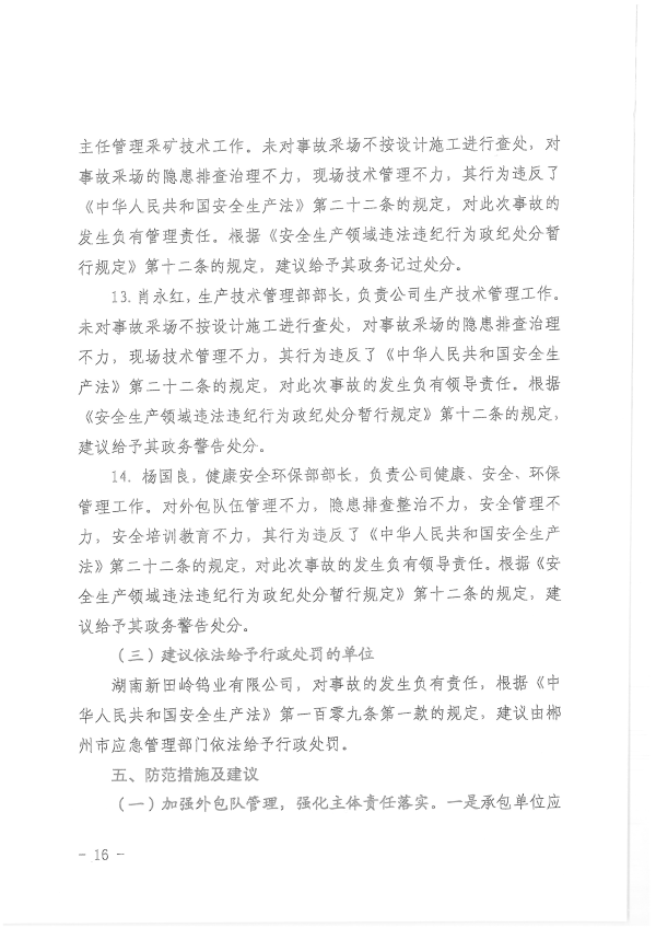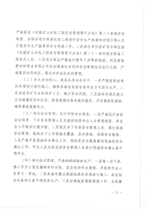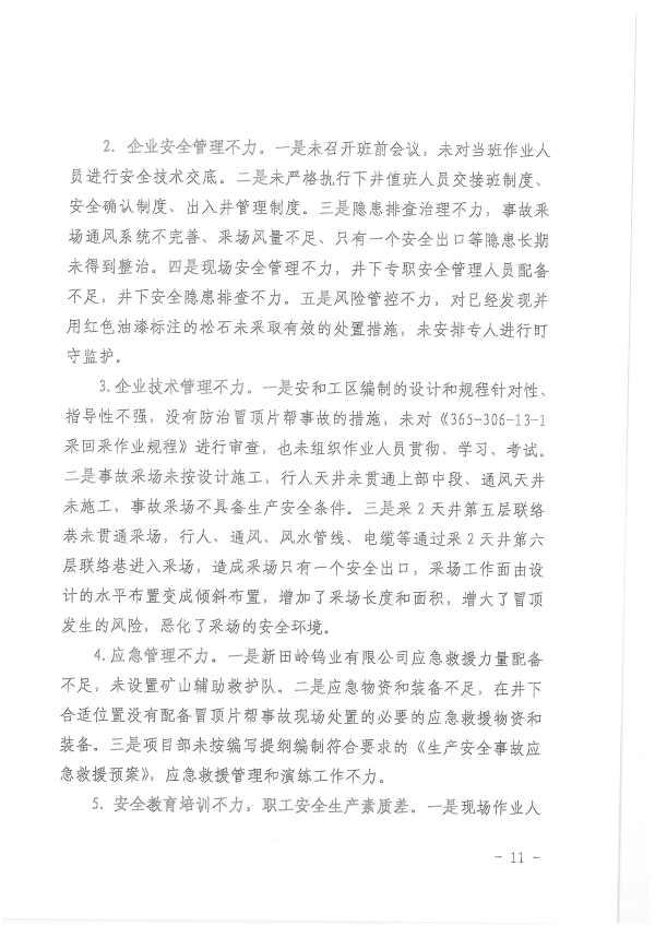 湖南新田嶺鎢業(yè)有限公司“4?19”冒頂片幫事故調(diào)查報(bào)告